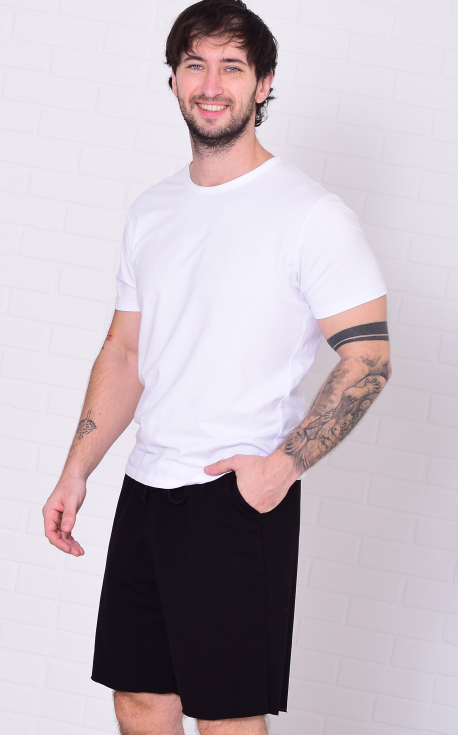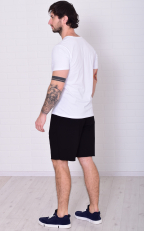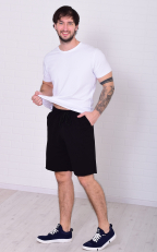 Шорты свободного кроя на резинке с двумя боковыми карманами и одним накладным сзади. Длина по боковому шву: 46-54см, 48-54см, 50-55см, 52-56см, 54-57см, 56-58см, 58-59см, 60-60см. Длина по шаговому шву: 46-24см, 48-24см, 50-24см, 52-24см, 54-24см, 56-25см, 58-26см, 60-26см. Уход: бережная стирка 30 градусов отдельно от других вещей.