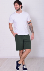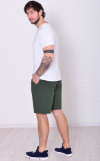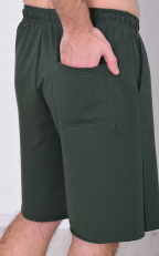 Шорты свободного кроя на резинке с двумя боковыми карманами и одним накладным сзади. Длина по боковому шву: 46-54см, 48-54см, 50-55см, 52-56см, 54-57см, 56-58см, 58-59см, 60-60см. Длина по шаговому шву: 46-24см, 48-24см, 50-24см, 52-24см, 54-24см, 56-25см, 58-26см, 60-26см. Уход: бережная стирка 30 градусов отдельно от других вещей.
