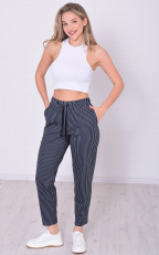 Брюки свободного покроя, слегка зауженные к низу, с двумя боковыми карманами. Пояс на широкой резинке со шнуром. Длина по боковому шву: 42-92 см, 44-93 см, 46-94 см, 48-95 см, 50-96 см, 52-97 см, 54-98 см, 56-99 см, 58-100 см, 60-101 см. Длина по шаговому шву: 42-69 см, 44-69 см, 46-69 см, 48-69 см, 50-70 см, 52-70 см, 54-70 см, 56-70 см, 58-70 см, 60-70 см. Подкладки нет, без застежки. Плотность ткани: тонкая. Карманы в боковом шве. Шнур и резинка в поясе. Посадка средняя. Уход: деликатная стирка в машине при 30 градусах отдельно от других вещей.
