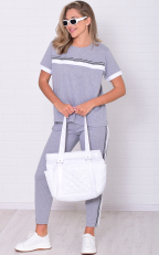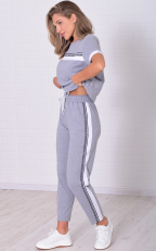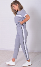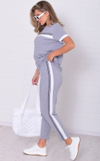 Состав: 50%-хлопок, 50%-пэ Костюм женский из кулирки. Состоит из футболки и брюк. Футболка с округлой горловиной. Рукав притачной с манжетом. Яркий принт в виде притачной ленты в районе кокетки со вставкой из ткани другого цвета . Брюки с карманами. По бокам лампас в виде притачной ленты , и вставка другого цвета ткани. Пояс на резинке с люверсами и шнур. К низу брюки заужены. Отделочная лента на костюме может отличаться от представленной на фото (золото или серебро, без выбора). Длина изделия 50 размер: длина футболки по спинке – 63 см длина брюк по боковому шву - 101 см длина по шаговому шву - 70 см. Подкладки нет. Плотность ткани-тонкая. Накладные карманы в боковом шве. Шнур вставлен в пояс брюк, резинка в поясе. Декор: отделочная тесьма-лента на лампасах брюк и на кокетке футболки. Высота посадки средняя. Уход: деликатная стирка в машине при 30 градусах отдельно от других вещей.