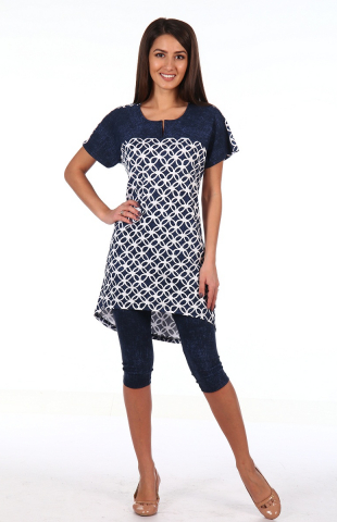 Костюм из однотонного трикотажного футера. Состоит из толстовки свободного кроя со спущенной проймой, по бокам толстовки разрезы. Шорты свободного кроя с высокой посадкой на поясе со шнуром и двумя боковыми карманами. Длина изделия по спинке: 42-66 см, 44-67 см, 46-68 см, 48-69 см, 50-70 см, 52-71 см, 54-72 см, 56-73 см, 58-74 см, 60-75 см. Длина шорт по боковому шву: 42-50 см, 44-50 см, 46-51 см, 48-51 см, 50-52 см, 52-53 см, 54-54 см, 56-54,5 см, 58-55 см, 60-55,5 см. Длина шорт по шаговому шву: 42-20 см, 44-20 см, 46-20 см, 48-20 см, 50-20 см, 52-21 см, 54-21 см, 56-21 см, 58-21 см, 60-21 см.