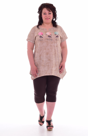50%-хлопок, 50%-пэ Женский костюм свободного кроя, футболка со спущенной проймой, по рукавам и полочке отделочные яркие полосы. Брюки свободные с ярким лампасом, двумя боковыми карманами, на широком поясе с резинкой и шнуром. Длина футболки по спинке: 46-65 см, 48-66 см, 50-67 см, 52-69 см, 54-70 см, 56-70 см, 58-72 см, 60-73 см. Длина брюк по боковому шву: 46-94 см. 48-95 см, 50-96 см, 52-97 см, 54-98 см, 56-99 см, 58-100 см, 60-101 см. Длина брюк по шаговому шву: 46-69 см, 48-69 см, 50-70 см, 52-70 см, 54-70 см, 56-70 см, 58-70 см, 60-70 см. Подкладки нет. Плотность ткани-тонкая. Карманы в боковом шве. Шнур вставлен в пояс, резинка в поясе брюк. По центру полочки принт и полосы-вставки контрастного отделочного цвета. Высота посадки брюк средняя. Уход: деликатная стирка в машине при 30 градусах отдельно от других вещей.