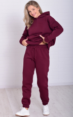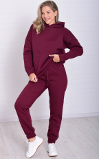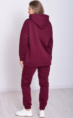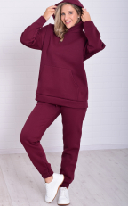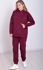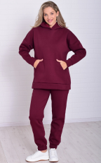 Костюм женский из теплого футера пенье с начесом. Худи свободного кроя, удлиненная, с объемным капюшоном, карманом "кенгуру" на поясе, рукав со спущенной проймой длинный на манжете. Брюки-джоггеры свободного кроя с двумя боковыми карманами, пояс на широкой резинке со шнурком, низ брюк на широкой резинке. Длина толстовки по спинке: 42-71 см, 44-72 см, 46-73 см, 48-74 см, 50-75 см, 52-76 см, 54-77 см, 56-78 см, 58-78 см, 60-79 см. Длина брюк по боковому шву: 42-102 см, 44-103 см, 46-104 см, 48-105 см, 50-105 см, 52-105 см, 54-106 см, 56-106 см, 58-106 см, 60-106 см. Длина брюк по шаговому шву: 42-77 см, 44-77 см, 48-77 см, 50-77 см, 52-77 см, 54-77 см, 56-77 см, 58-77 см, 60-77 см. Подкладки нет. Застежки нет. Плотность ткани: плотная. Карманы в боковых швах брюк и карман - кигуруми. Резинка и шнур в поясе брюк. Комплектность: толстовка и брюки. Высота посадки: средняя. Уход: деликатная стирка в машине при 30 градусах отдельно от других вещей.