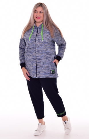 Костюм женский из теплого футера пенье с начесом. Худи свободного кроя, удлиненная, с объемным капюшоном, карманом "кенгуру" на поясе, рукав со спущенной проймой длинный на манжете. Брюки-джоггеры свободного кроя с двумя боковыми карманами, пояс на широкой резинке со шнурком, низ брюк на широкой резинке. Длина толстовки по спинке: 42-71 см, 44-72 см, 46-73 см, 48-74 см, 50-75 см, 52-76 см, 54-77 см, 56-78 см, 58-78 см, 60-79 см. Длина брюк по боковому шву: 42-102 см, 44-103 см, 46-104 см, 48-105 см, 50-105 см, 52-105 см, 54-106 см, 56-106 см, 58-106 см, 60-106 см. Длина брюк по шаговому шву: 42-77 см, 44-77 см, 48-77 см, 50-77 см, 52-77 см, 54-77 см, 56-77 см, 58-77 см, 60-77 см. Подкладки нет. Застежки нет. Плотность ткани: плотная. Карманы в боковых швах брюк и карман - кигуруми. Резинка и шнур в поясе брюк. Комплектность: толстовка и брюки. Высота посадки: средняя. Уход: деликатная стирка в машине при 30 градусах отдельно от других вещей.