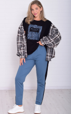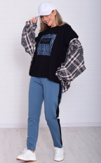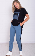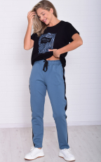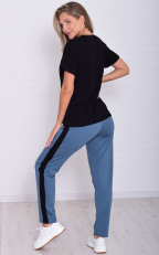 Брюки: 72%-хлопок, 20%-пэ, 8%-эластан. Футболка: 100% -хлопок Летний женский костюм с брюками и футболкой. Футболка из легкого трикотажа свободного кроя с коротким рукавом на манжете. Брюки из хлопкового футера 2х нитки с высокой удобной посадкой на широкой резинке в боковых швах карманы с отрезным боком. Ткань плотная, держит форму, не скатывается, колени не вытягиваются. На брюках контрастный лампас в цвет футболки. Костюм универсальный, комфортный для прогулки, спорта, путешествий, домашних дел. Длина брюк по боковому шву: 44-99см,46-100см,48-100см,50-101см,52-102см,54-103см,56-104см,58-105см,60-105см.Длина брюк по шаговому шву:44-72см,46-72см,48-72 см,50-72 см,52-72 см,54-72 см,56-72 см, 58-72 см,60-72 см. Ширина брюк в бедрах:44-52см,46-54см,48-56 см,50-58см,52-60см,54-62см,56-64см,58-66см,60-68см. Ширина брюк в талии:44-40см,46-41см,48-42см,50-43см,52-44см,54-46 см,56-47см,58-48см,60-49см.Длина футболки по спинке:44-61см,46-62см,48-63см,50-64см,52-65см,54-66см,56-67см,58-68см,60-69см,62-70см,64-71см.