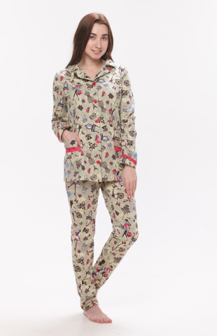 Женский костюм из футера.Толстовка свободного кроя со спущенной проймой, с двумя разрезами по низу. Горловина-стойка, застегивается на молнию до уровня линии груди, рукава длинные на манжете. Брюки свободного кроя с разрезами по низу, двумя боковыми карманами, пояс на широкой резинке со шнуром. Длина толстовки: 42-63 см, 44-64 см, 46-65 см, 48-66 см, 50-67 см. 52-68 см, 54-69 см, 56-70 см. Длина брюк по боковому шву: 42-104 см, 44-105 см, 46-106 см, 48-107 см, 50-108 см, 52-109 см, 54-110 см, 56-110 см. Длина брюк по шаговому шву: 42-80 см, 44-80 см, 46-80 см, 48-80 см, 50-80 см, 52-80 см, 54-80 см, 56-80 см.