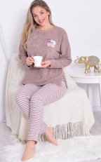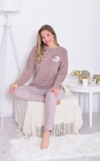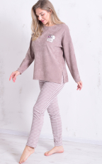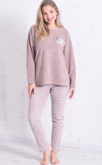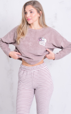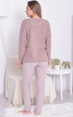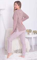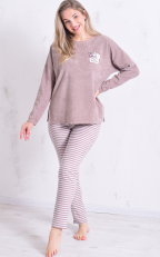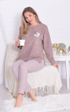 Состав: 70%-хлопок, 30%-пэ Пижама жнская из мягкой махры премиум качества. Однотонный джемпер свободного кроя со спущенной проймой и длинными рукавами, горловина круглая, по бокам разрезы на полочке, принт с забавными медведями. Брюки прямые в полоску, не широкие, с двумя боковыми карманами на широком поясе с резинкой. Длина джемпера по спинке: 42-64 см, 44-65 см, 46-66 см, 48-67 см, 50-68 см, 52-70 см, 52-70 см, 54-72 см, 56-73 см, 58-74 см, 60-75 см. Длина брюк по боковому шву: 42-102 см, 44-103 см, 46-104 см, 48-104 см, 50-104, 52-105 см, 54-105 см, 56-106 см, 58-107 см, 60-107 см. Длина брюк по шаговому шву: 42-77 см, 44-77 см, 46-77 см, 48-77 см, 50-77 см, 52-77 см, 54-77 см, 56-77 см, 58-76 см, 60-76 см. Подкладки нет. Застежки нет. Плотность ткани: средняя. Карманы в боковом шве брюк. Комплектация: джемпер и брюки. Резинка в поясе брюк. Декор: принт на полочке. Высота посадки: средняя. Уход: деликатная стирка в машине при 30 градусах отдельно от других вещей.