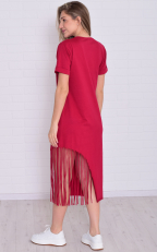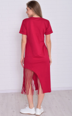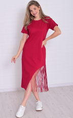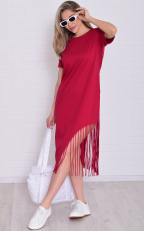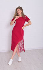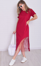 Состав: 100% хлопок Женское хлопковое платье-футболка свободного кроя в длине миди. Горловина круглая по низу, рукава манжеты. По низу платья ассиметрично с одной стороны бахрома-тренд сезона. Длина:42-117,44-118,46-119,48-120,50-121,52-122,54-123,56-124,58-124,60-125. Обхват груди: 42-46,44-48,46-50,48-52,50-54,52-56,54-58,56-60,58-62,60-64. Обхват бедер: 42-50,44-52,46-54,48-56,50-58,52-60,54-62,56-64,58-66,60-68. Длина рукава с плечом: 42-31,44-31,46-32,48-32,50-33,52-34,54-35,56-36,58-37,60-38.