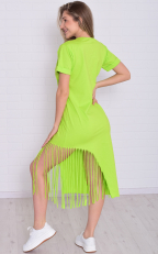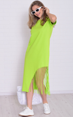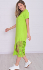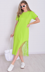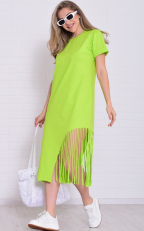 Состав: 100% хлопок Женское хлопковое платье-футболка свободного кроя в длине миди. Горловина круглая по низу, рукава манжеты. По низу платья ассиметрично с одной стороны бахрома-тренд сезона. Длина:42-117,44-118,46-119,48-120,50-121,52-122,54-123,56-124,58-124,60-125. Обхват груди: 42-46,44-48,46-50,48-52,50-54,52-56,54-58,56-60,58-62,60-64. Обхват бедер: 42-50,44-52,46-54,48-56,50-58,52-60,54-62,56-64,58-66,60-68. Длина рукава с плечом: 42-31,44-31,46-32,48-32,50-33,52-34,54-35,56-36,58-37,60-38.