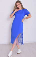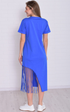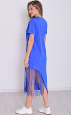 Состав: 100% хлопок Женское хлопковое платье-футболка свободного кроя в длине миди. Горловина круглая по низу, рукава манжеты. По низу платья ассиметрично с одной стороны бахрома-тренд сезона. Длина:42-117,44-118,46-119,48-120,50-121,52-122,54-123,56-124,58-124,60-125. Обхват груди: 42-46,44-48,46-50,48-52,50-54,52-56,54-58,56-60,58-62,60-64. Обхват бедер: 42-50,44-52,46-54,48-56,50-58,52-60,54-62,56-64,58-66,60-68. Длина рукава с плечом: 42-31,44-31,46-32,48-32,50-33,52-34,54-35,56-36,58-37,60-38.
