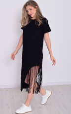 Состав: 100% хлопок Женское хлопковое платье-футболка свободного кроя в длине миди. Горловина круглая по низу, рукава манжеты. По низу платья ассиметрично с одной стороны бахрома-тренд сезона. Длина:42-117,44-118,46-119,48-120,50-121,52-122,54-123,56-124,58-124,60-125. Обхват груди: 42-46,44-48,46-50,48-52,50-54,52-56,54-58,56-60,58-62,60-64. Обхват бедер: 42-50,44-52,46-54,48-56,50-58,52-60,54-62,56-64,58-66,60-68. Длина рукава с плечом: 42-31,44-31,46-32,48-32,50-33,52-34,54-35,56-36,58-37,60-38.