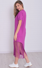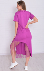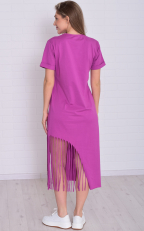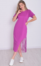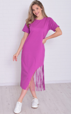 Состав: 100% хлопок Женское хлопковое платье-футболка свободного кроя в длине миди. Горловина круглая по низу, рукава манжеты. По низу платья ассиметрично с одной стороны бахрома-тренд сезона. Длина:42-117,44-118,46-119,48-120,50-121,52-122,54-123,56-124,58-124,60-125. Обхват груди: 42-46,44-48,46-50,48-52,50-54,52-56,54-58,56-60,58-62,60-64. Обхват бедер: 42-50,44-52,46-54,48-56,50-58,52-60,54-62,56-64,58-66,60-68. Длина рукава с плечом: 42-31,44-31,46-32,48-32,50-33,52-34,54-35,56-36,58-37,60-38.