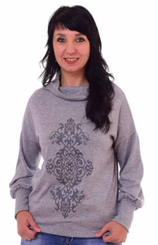 Женский костюм из футера.Толстовка свободного кроя со спущенной проймой, с двумя разрезами по низу. Горловина-стойка, застегивается на молнию до уровня линии груди, рукава длинные на манжете. Брюки свободного кроя с разрезами по низу, двумя боковыми карманами, пояс на широкой резинке со шнуром. Длина толстовки: 42-63 см, 44-64 см, 46-65 см, 48-66 см, 50-67 см. 52-68 см, 54-69 см, 56-70 см. Длина брюк по боковому шву: 42-104 см, 44-105 см, 46-106 см, 48-107 см, 50-108 см, 52-109 см, 54-110 см, 56-110 см. Длина брюк по шаговому шву: 42-80 см, 44-80 см, 46-80 см, 48-80 см, 50-80 см, 52-80 см, 54-80 см, 56-80 см.