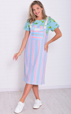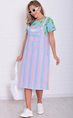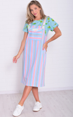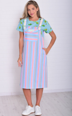 Состав: 100%-хлопок. Платье женское, имитирующее сарафан с футболкой. На бретели нашита отделочная тесьма с пуговицей, на полочке нагрудный карман с клапаном и два кармана в боковом шве. Длина сарафана по спинке: 48-110 см, 50-112 см, 52-115 см, 54-116 см, 56-116 см, 58-117 см, 60-118 см, 62-118 см.