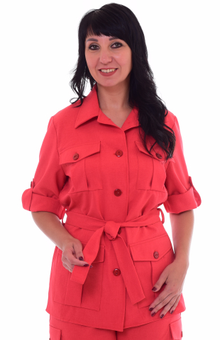 Платье женское, имитирующее сарафан с футболкой. На бретели нашита отделочная тесьма с пуговицей, на полочке нагрудный карман с клапаном и два кармана в боковом шве. Длина сарафана по спинке: 48-110 см, 50-112 см, 52-115 см, 54-116 см, 56-116 см, 58-117 см, 60-118 см, 62-118 см.