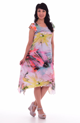 Оригинальное женское платье из кулирки. Горловина полукруглая , окантованная. Платье к низу слегка расклешенное. Рукав немного короткий с разрезом и вставлен яркий шнур. По низу идет валан со сборкой. Длина изделия по спинке: 48 р - 113 см, 50 р. - 113 см, 52 р. - 114 см, 54 р. - 114 см, 56 р. - 115 см, 58 р. - 115 см, 60 р. - 116 см, 62 р. - 116 см.