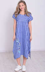 Состав: 100%-хлопок Элегантное и удобное женское платье из кулирки полуприталенного силуэта . Спущенный рукав с оголенными плечами. Расклешение от груди вниз к подолу. На полочки изящный принт. Низ платья с фигурным краем. Длина изделия по спинке: 54 р. - 116 см, 56 р. - 117 см, 58 р. - 117 см, 60 р. - 118 см, 62 р. - 118, 64 р - 119 см, 66 р. - 119 см.