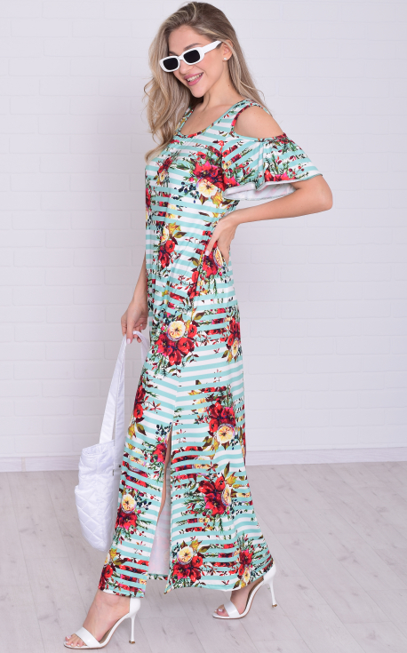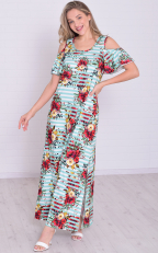 Платье женское 4-114 (мята+красный)