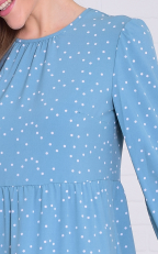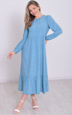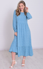 Рост: 164-170. Состав: 100%-ПЭ. Платье свободного кроя в длине миди, А-силуэт в расцветке мелкий горошек. Горловина круглая, рукав длинный- фонарик, по окату рукава и низ рукава присборен. По низу платья широкая оборка. При желании можно к платью подобрать пояс и подчеркнуть линию талии. Ткань шелковистая, очень приятная к телу. Длина платья: 46-128 см, 48-129 см, 50-130 см, 52-131 см, 54-132 см, 56-133 см. Длина рукава: 46-63 см, 48-63 см, 50-63 см, 52-64 см, 54-64 см, 56-64 см.