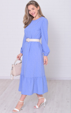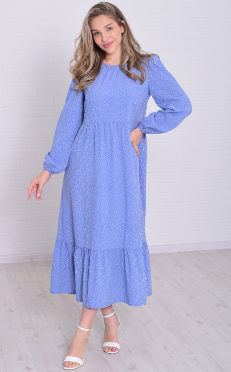 Рост: 164-170. Состав: 100%-ПЭ. Платье свободного кроя в длине миди, А-силуэт в расцветке мелкий горошек. Горловина круглая, рукав длинный- фонарик, по окату рукава и низ рукава присборен. По низу платья широкая оборка. При желании можно к платью подобрать пояс и подчеркнуть линию талии. Ткань шелковистая, очень приятная к телу. Длина платья: 46-128 см, 48-129 см, 50-130 см, 52-131 см, 54-132 см, 56-133 см. Длина рукава: 46-63 см, 48-63 см, 50-63 см, 52-64 см, 54-64 см, 56-64 см.