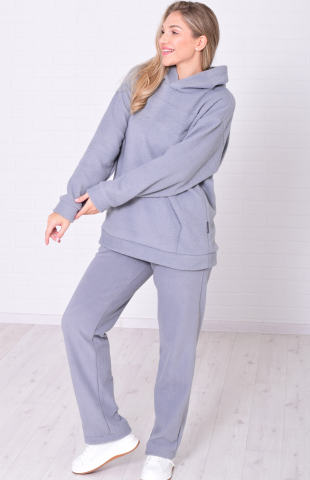 Толстовка свободного кроя со спущенной проймой, рукава на манжете, по бокам толстовки разрезы. Длина изделия : 42-66 см, 44-67 см, 46-68 см, 48-69 см, 50-70 см, 52-71 см, 54-72 см, 56-73 см, 58-74 см, 60-75 см.